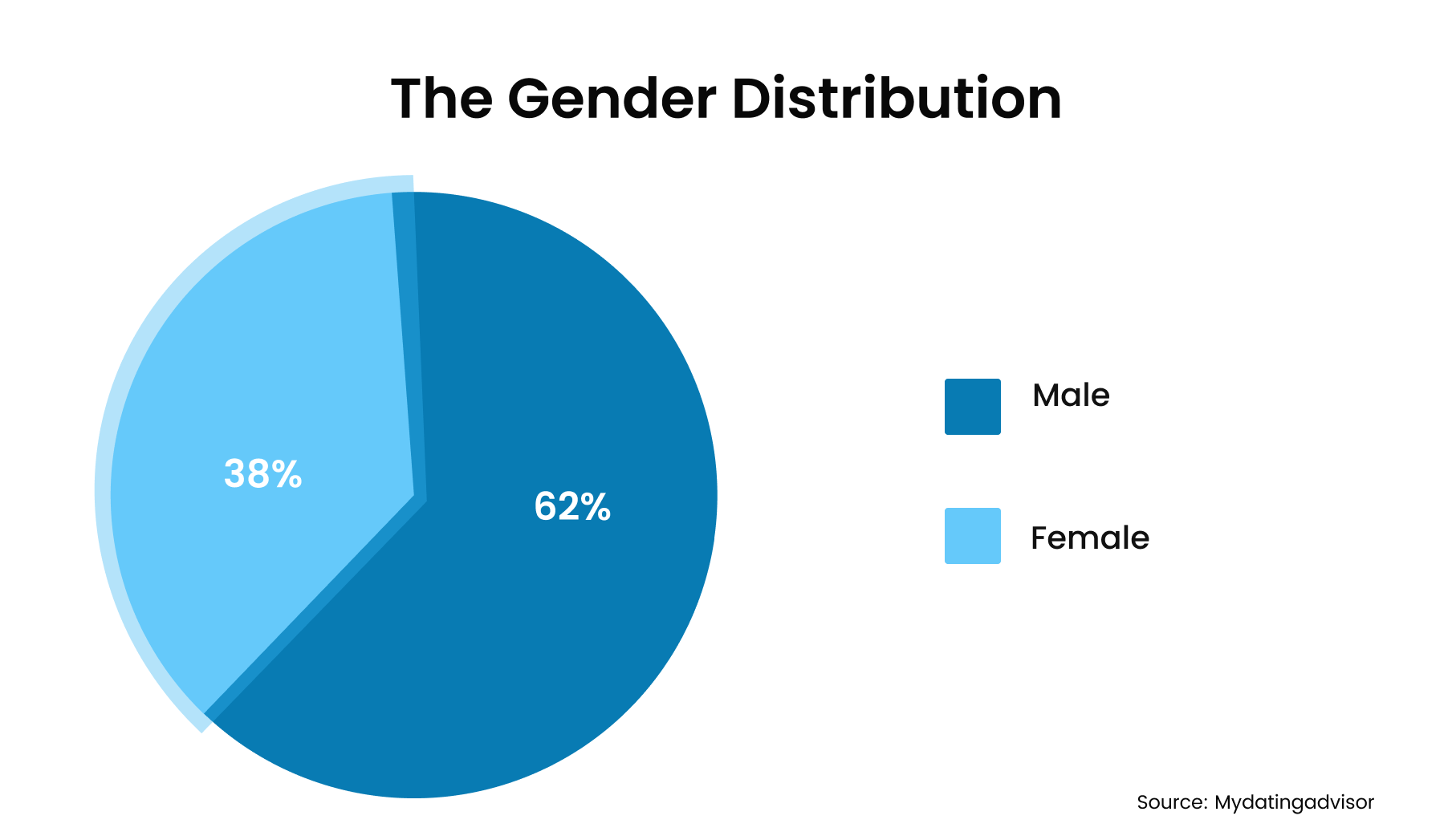 - Gender Proportion: The platform’s active users comprise 38% male and 62% female.